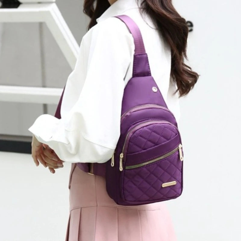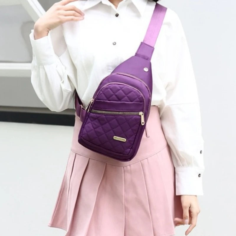 Descubre el bolso de pecho de nailon para mujer, una combinación perfecta de moda, comodidad y practicidad. Fabricado con tejido de nailon resistente al agua, este bolso tipo bandolera cruzada es ideal para el día a día, viajes o actividades al aire libre como el ciclismo o senderismo.